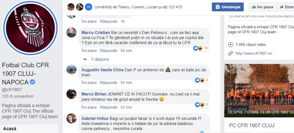 „Bai ce nesimțit ii Dan Petrescu, cum sa faci așa ceva cu Fica ? Te gândești puțin in ce situație l-ai pus pe copilul ăla ? Ești un om fără caracter indiferent de ce ai făcut tu la CFR”, a scris Cristian Marcu.