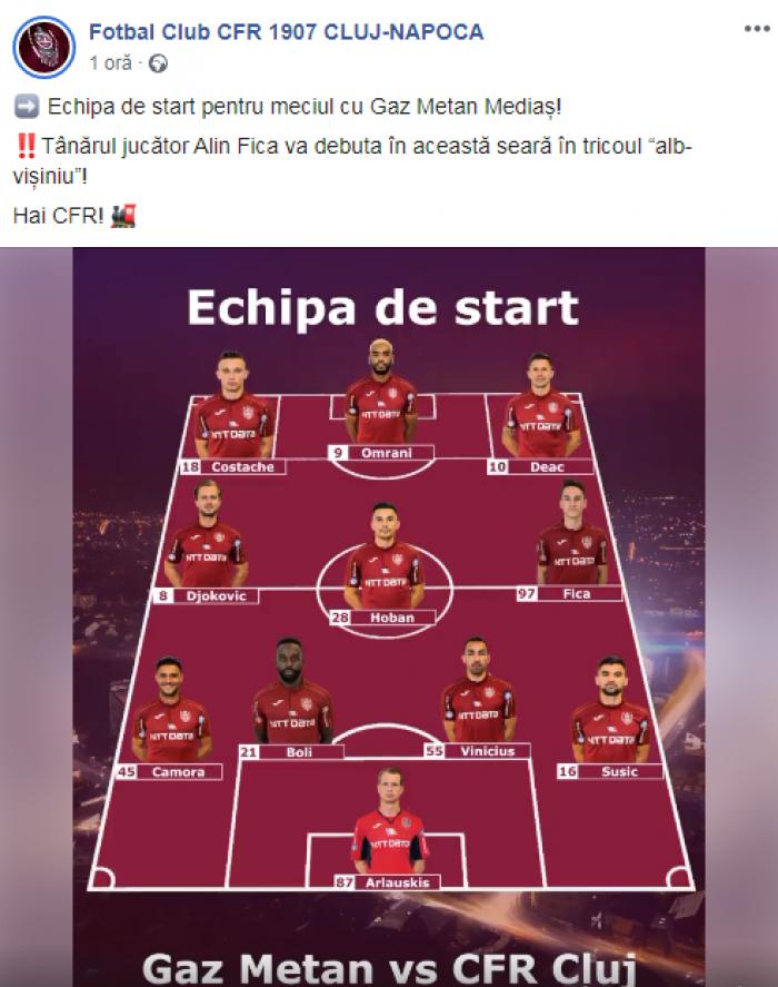 Tehnicianul campioanei l-a introdus în teren pe Păun în locul lui Fica, care nici măcar nu a apucat să atingă mingea. Mai mult, clujenii au anunțat pe pagina oficială de Facebook că Fica va debuta în această seară pentru echipa lor.