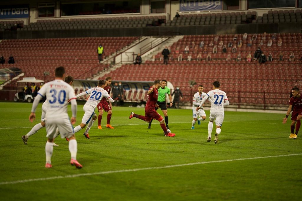 S-a terminat 2-1 și CFR Cluj e la cinci puncte de liderul CSU Craiova, care joacă duminică seara derby-ul cu Dinamo București.