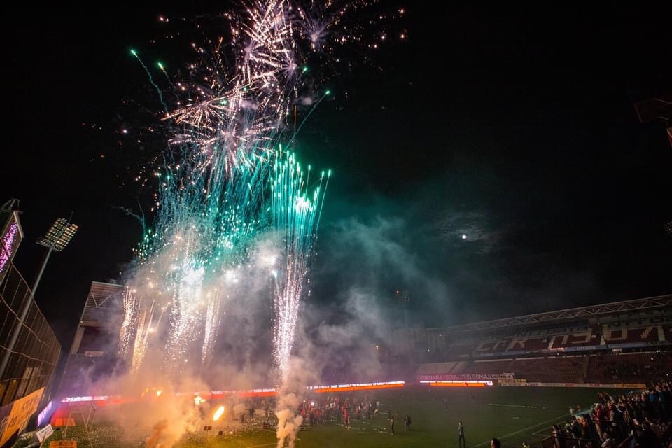 După un an de absență din cauza pandemiei, fanii clujeni au revenit în tribunele stadionului din Gruia pentru a se bucura de cel de-al 7-lea titlu de campioană a României, al patrulea consecutiv în Liga 1, iar jucătorii, staff-ul și conducerea le-au oferit suporterilor un impresionant foc de artificii și o ploaie de confetti la finalul partidei și au făcut turul arenei cu trofeul de campioană.