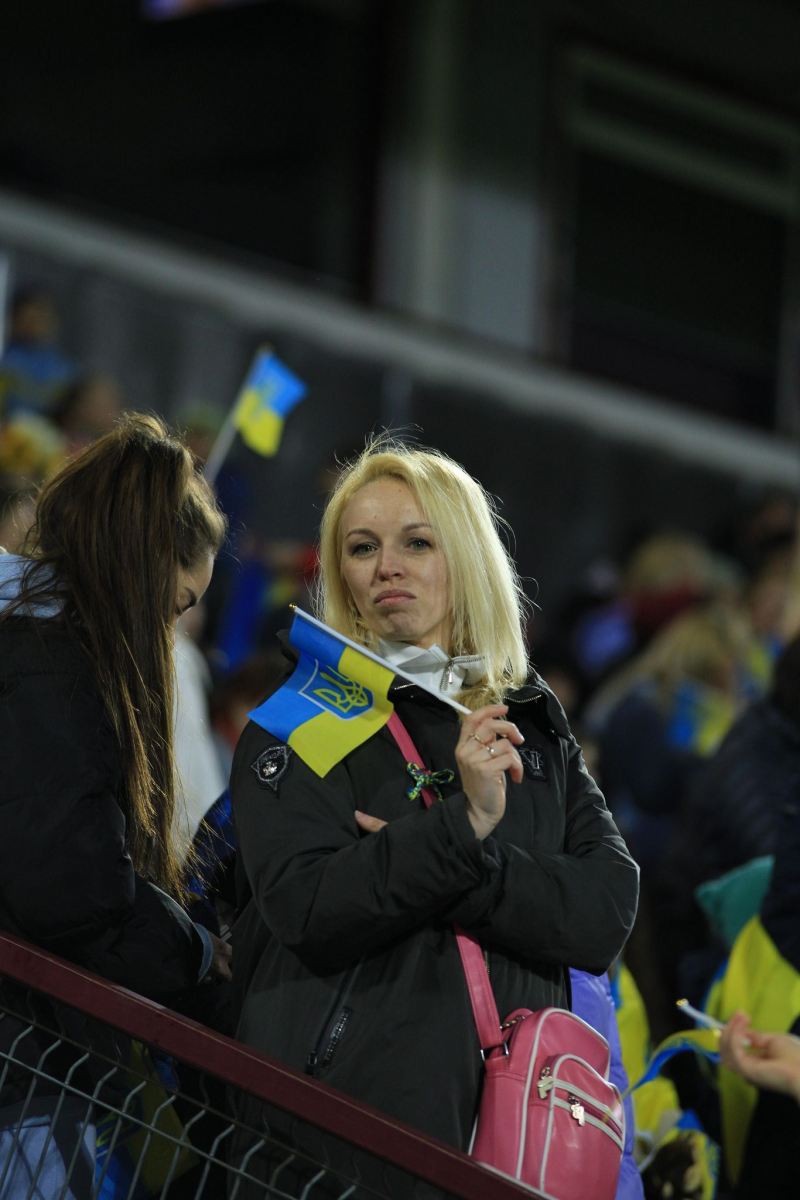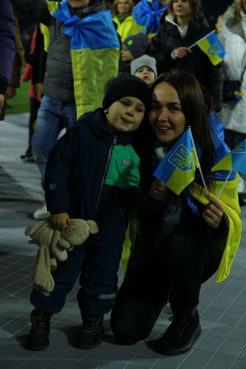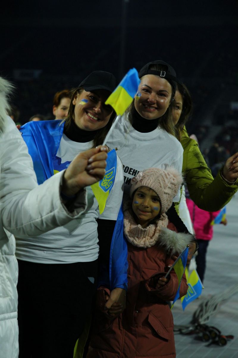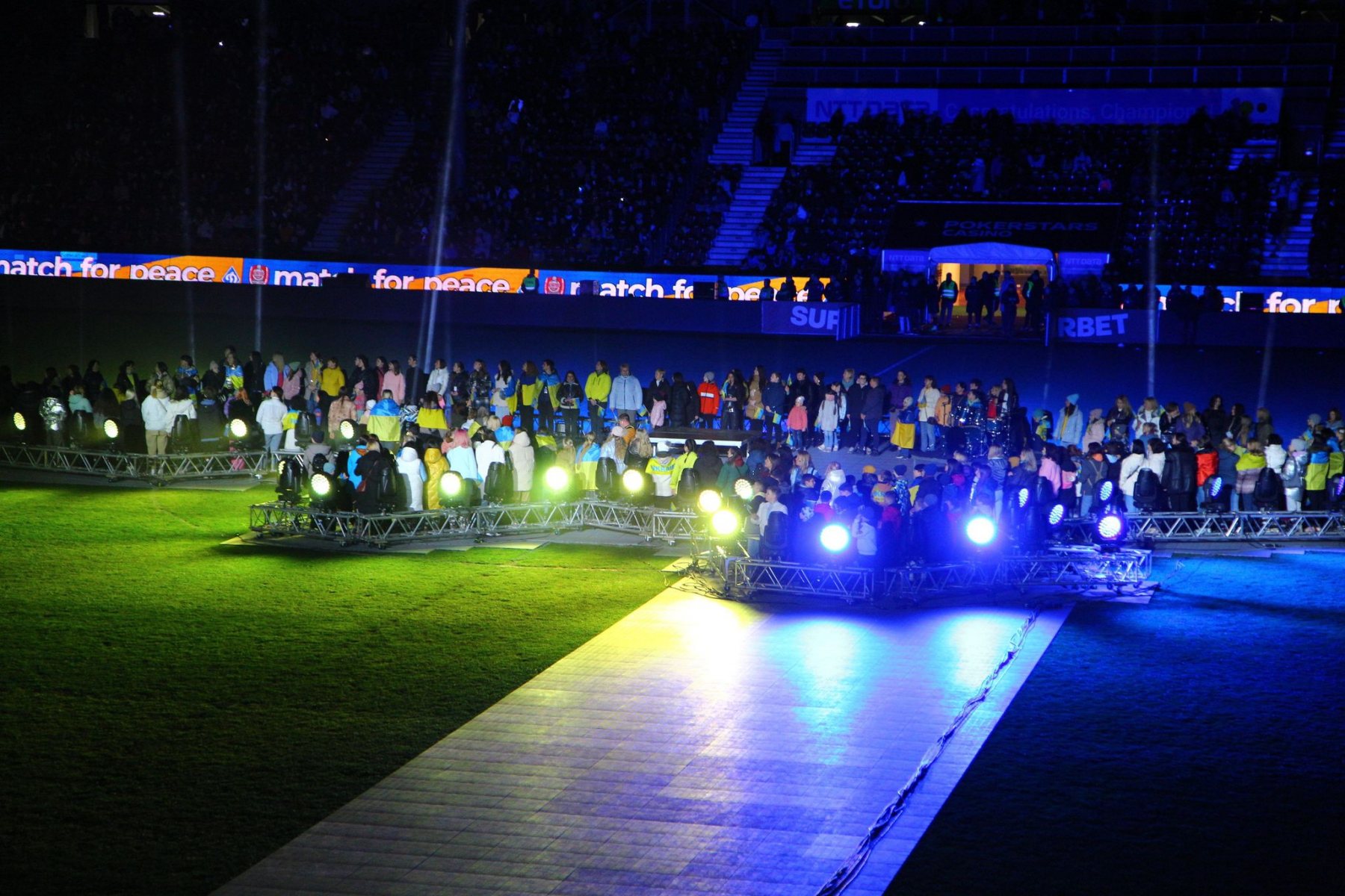 Spectatorii prezentați la această partidă au ridicat steaguri și eșarfe în culorile Ucrainei și au afișat mesaje pentru pace.