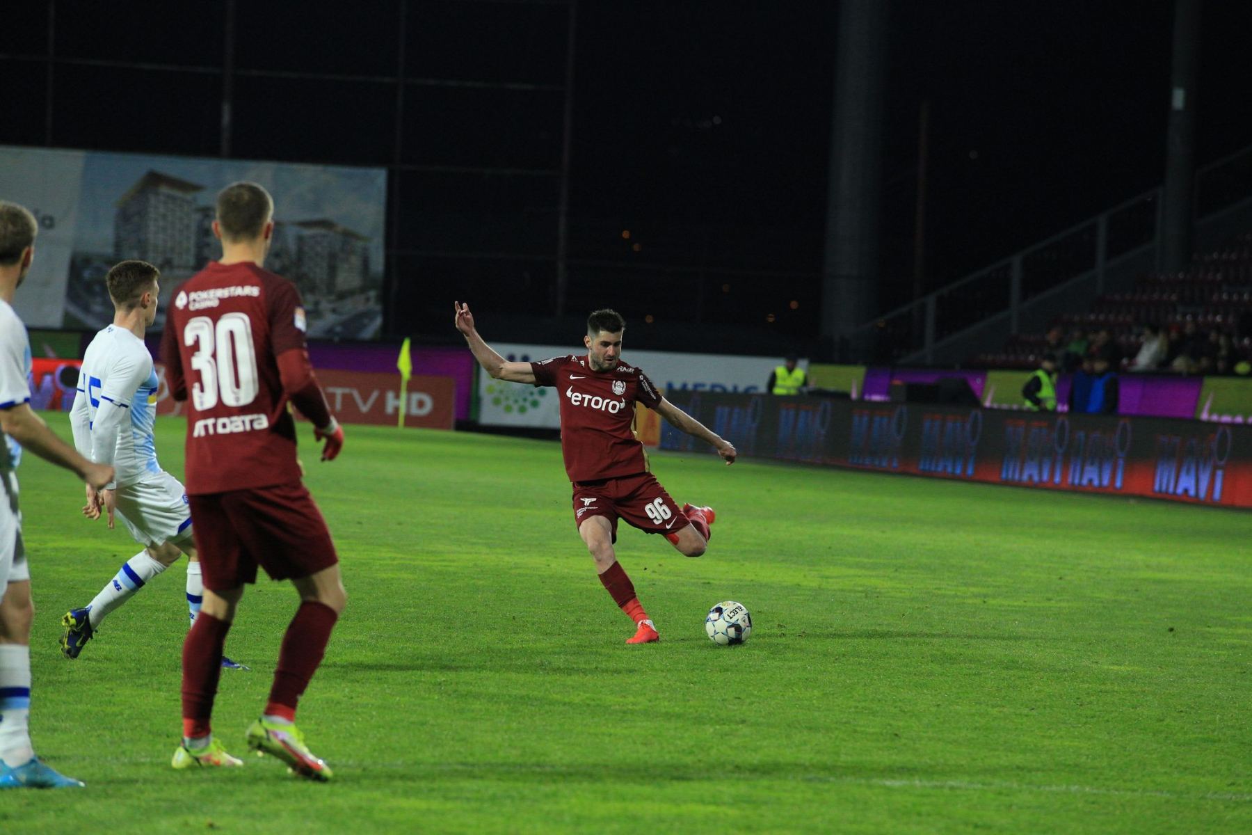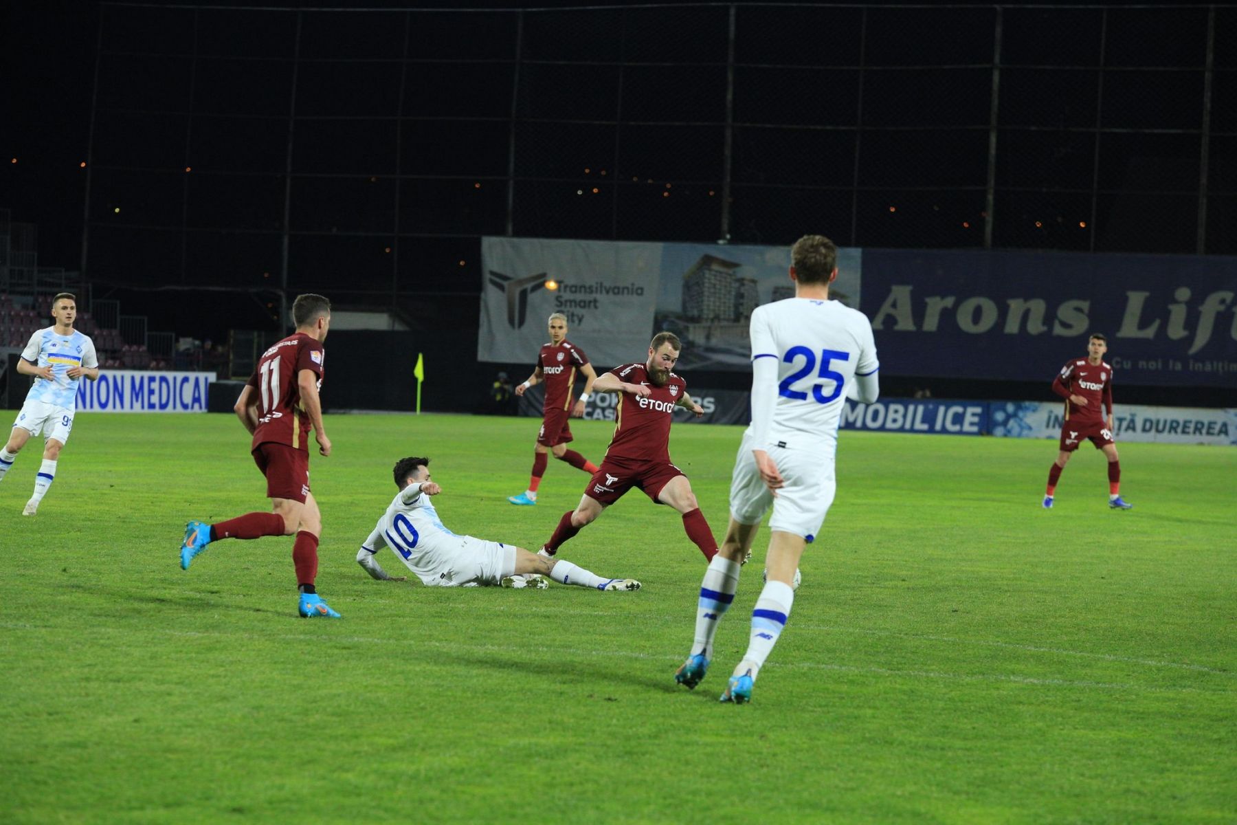 CFR a început în atac partida, iar Adrian Păun, „căpitanul” campioanei României pentru această confruntare, a finalizat plasat din marginea careului, iar portarul ucrainean Georgiy Bushchan a deviat în bară.