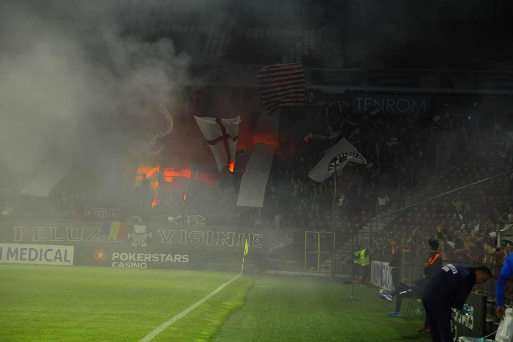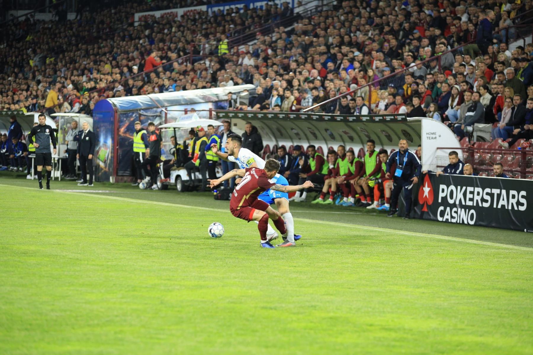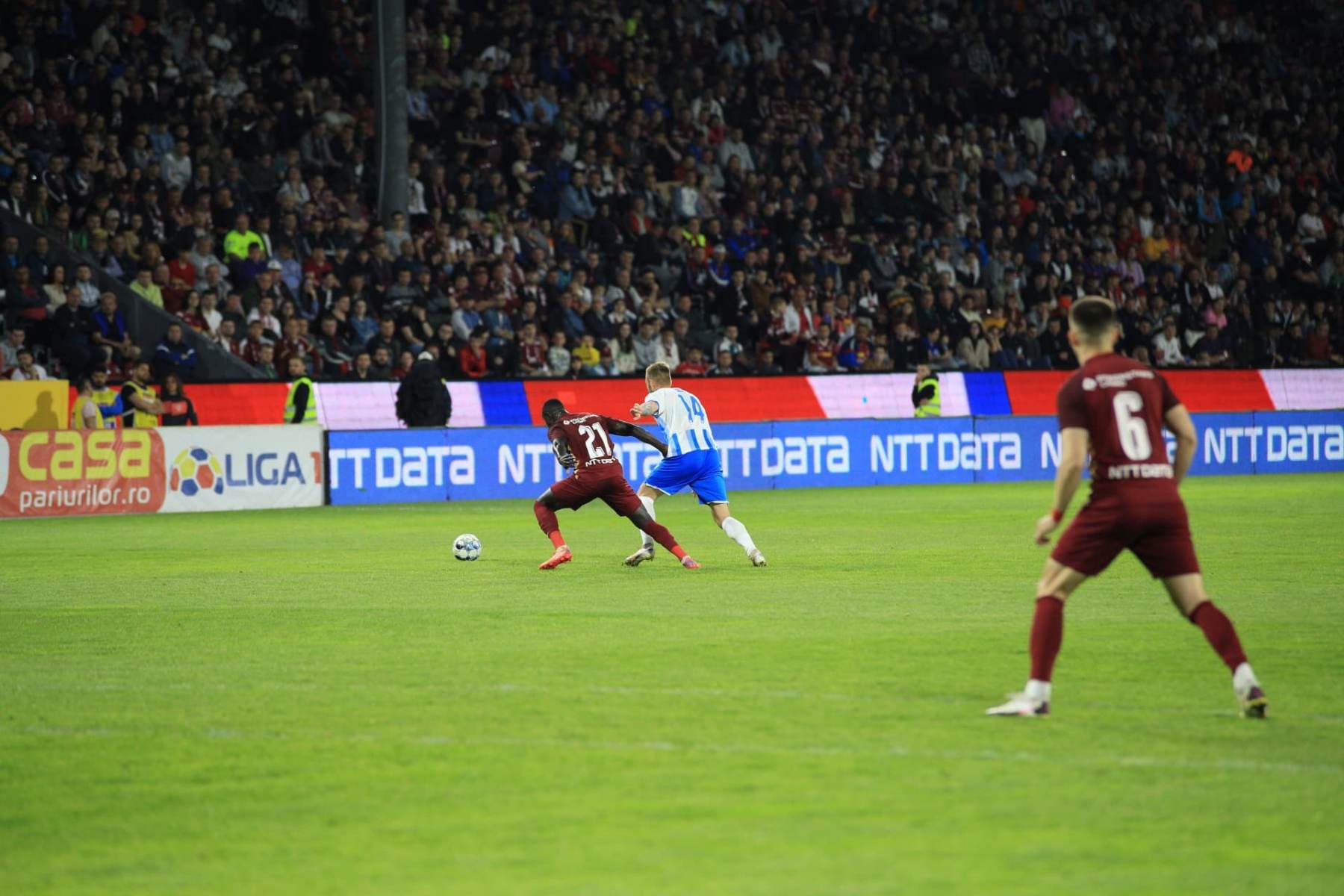 Prima acțiune a clujenilor a adus bucuria în Gruia. O lovitură liberă scoasă de Gabriel Debeljuh a însemnat șansa perfectă pentru feroviari de a deschide scorul. Centrarea lui Ciprian Deac a fost finalizată cu capul de Nana Boateng, numit jucătorul lunii la CFR. Așadar, finala pentru titlu începea de la 1-0 pentru gazde.