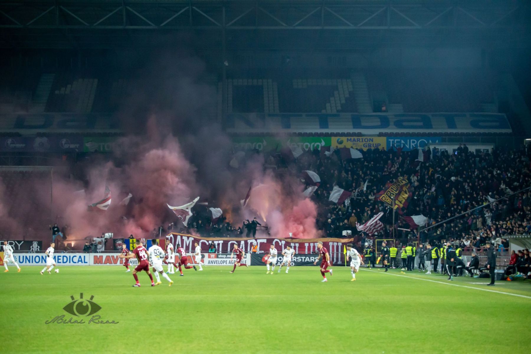 Cel mai vechi derby din România dintre CFR Cluj și Universitatea Cluj și-a consumat în această seară un nou episod,al 74-lea din istorie, iar partida s-a desfășurat într-o atmoferă spectaculoasă făcută de cei peste 4000 de suporteri ai „șepcilor roșii”, care au ocupat atât sectorul rezervat echipei oaspete, cât și o jumătate din tribuna a doua.