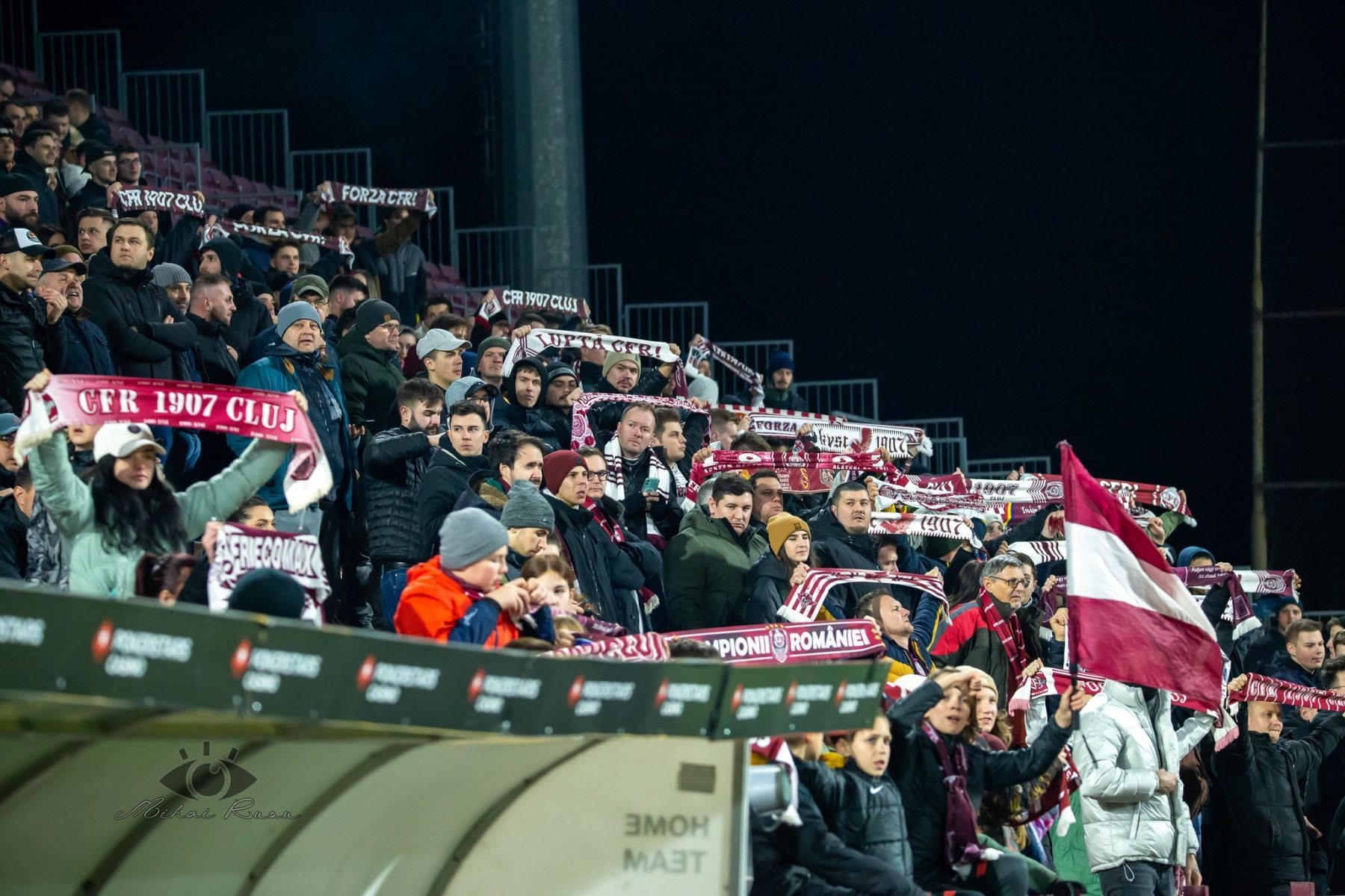 Fotoreporterul sportulclujean.ro, Mihai Rusu, a reușit să surprindă fotografia meciului în tribunele stadionului „Dr. Constantin Rădulescu”, un fan cu fular cu CFR Cluj a fost flancat de doi fani cu fulare alb-negre.